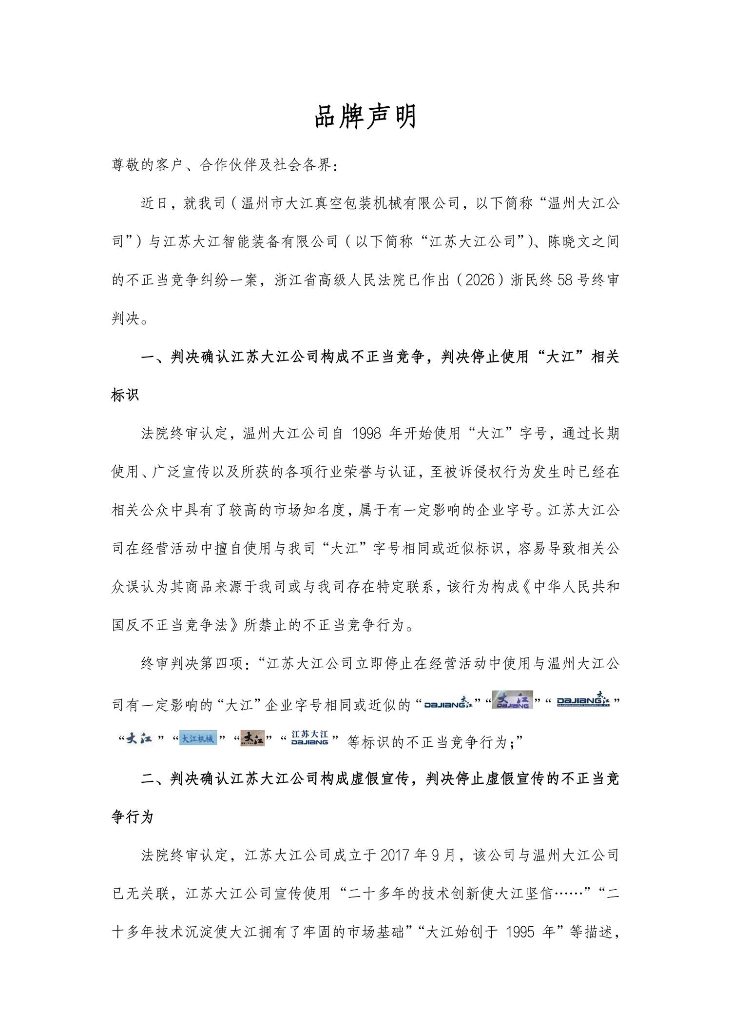 關(guān)于“大江”品牌的鄭重聲明2025-09-01